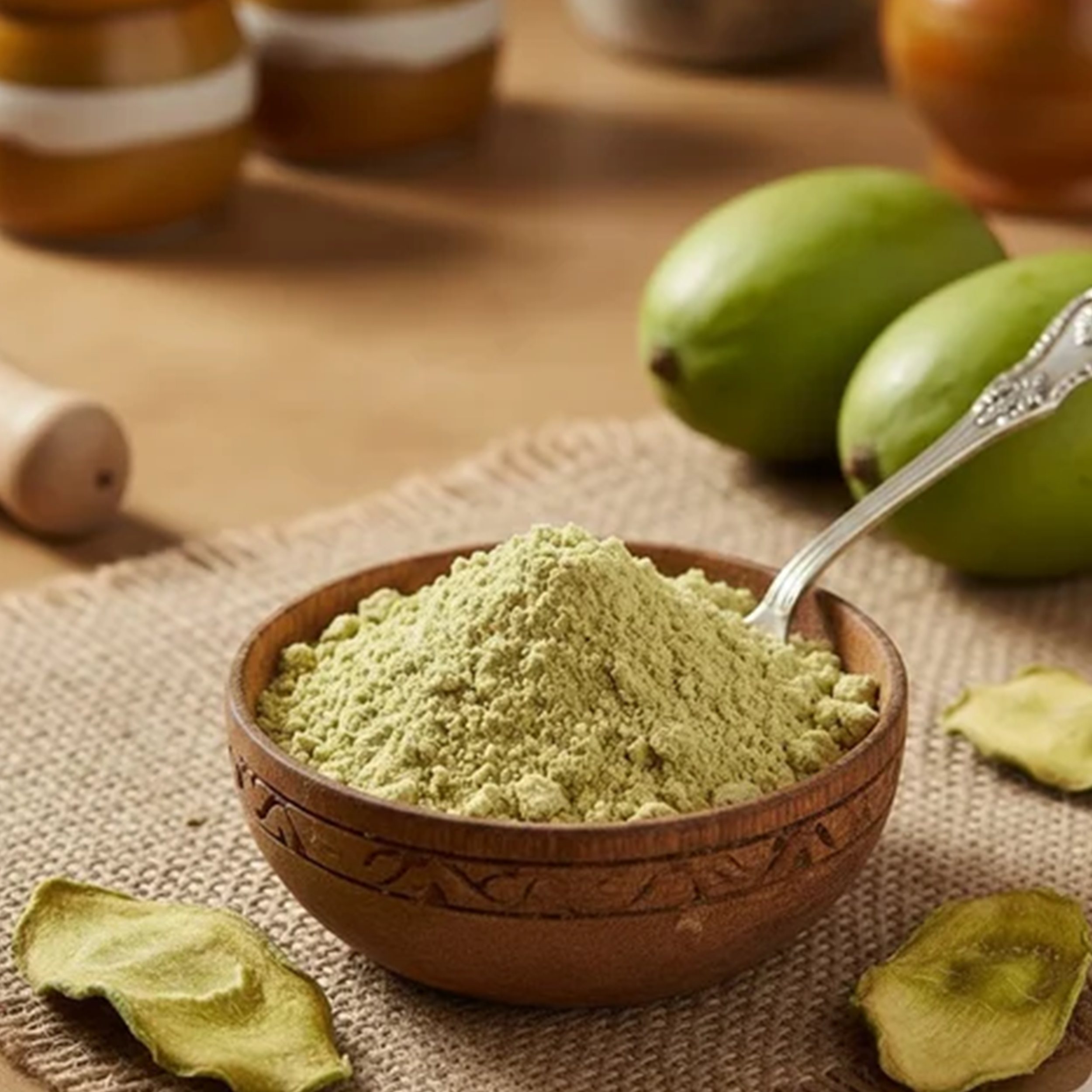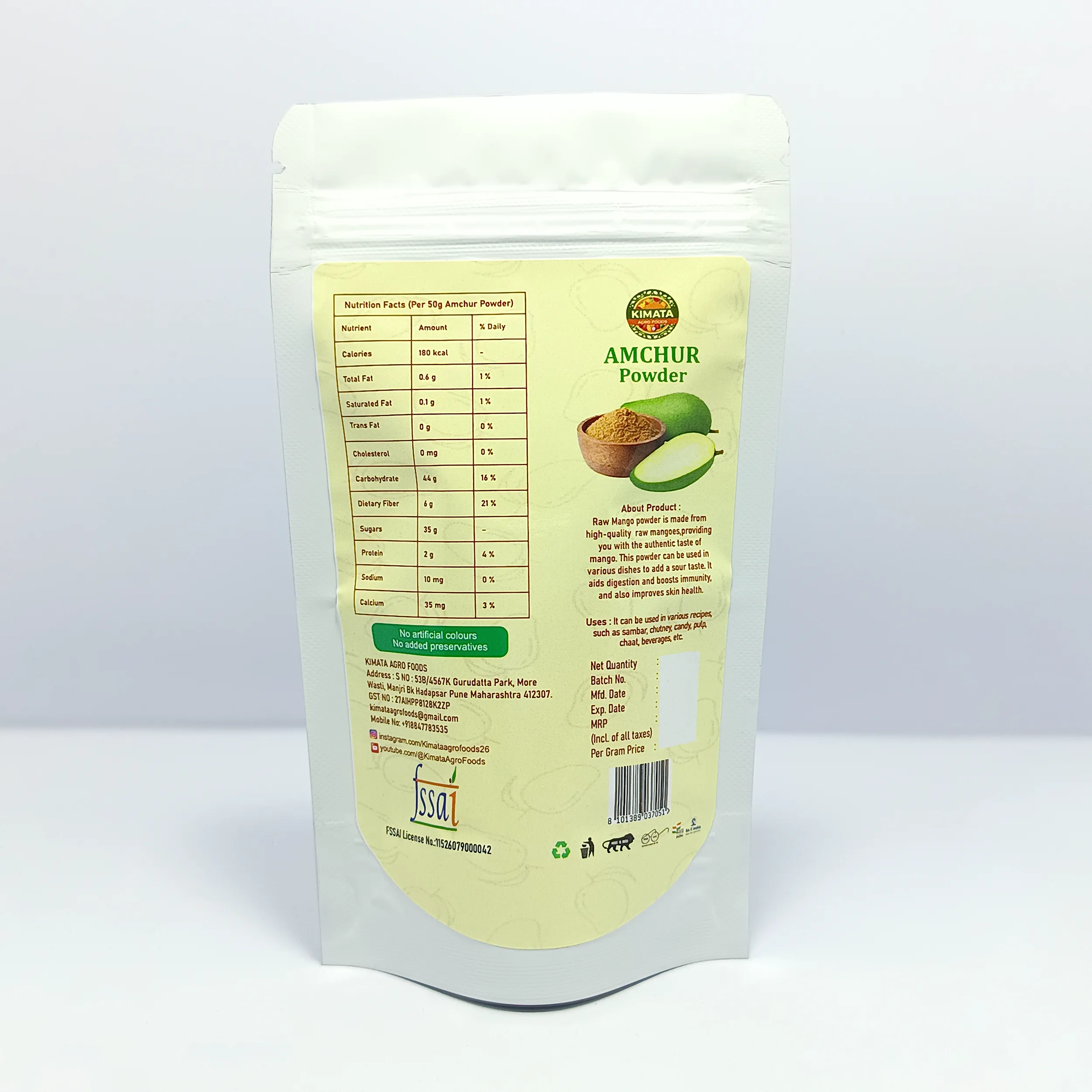 100% Dehydrated Amchur (Mango) Powder with no added preservatives, artificial colors, or flavors.