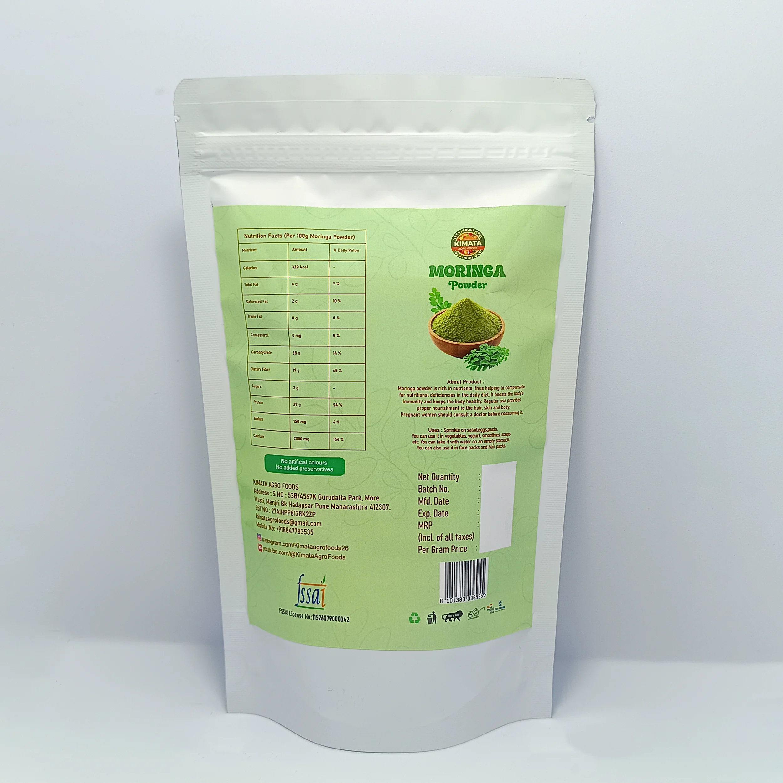 Moringa Powder is a nutrient-dense and versatile seasoning made from dehydrated moringa leaves that are finely ground into a smooth powder. It enhances the nutritional value of food while adding a mild, earthy flavor without the need for fresh leaves. Moringa powder is widely used in smoothies, juices, soups, sauces, curries, baked goods, and spice blends to boost taste, aroma, and health benefits. It is rich in vitamins, minerals, antioxidants, and essential amino acids that support immunity, improve digestion, promote energy, and aid overall wellness. With its long shelf life and easy storage, moringa powder is a convenient ingredient for everyday cooking in homes and commercial kitchens.