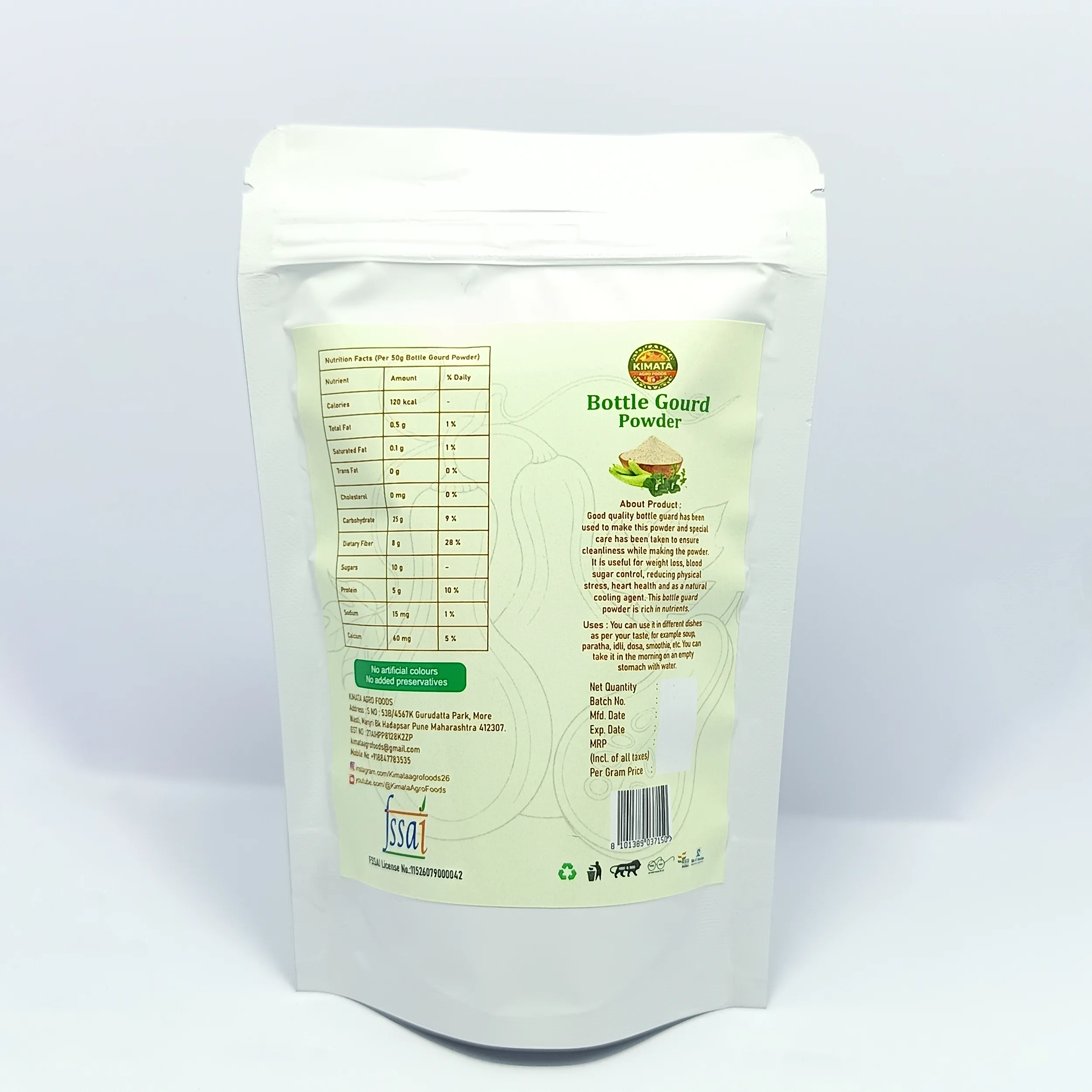 Bottle Gourd Powder is a nutritious and versatile seasoning made from dehydrated bottle gourd that is finely ground into a smooth powder. It enhances the nutritional value of food while adding a mild, slightly sweet flavor without the need for fresh bottle gourd. Bottle gourd powder is widely used in soups, dals, curries, smoothies, sauces, baked goods, and spice blends to boost taste, aroma, and health benefits. It is rich in vitamins, minerals, and dietary fiber that support digestion, promote hydration, aid weight management, and contribute to overall wellness. With its long shelf life and easy storage, bottle gourd powder is a convenient ingredient for everyday cooking in homes and commercial kitchens.