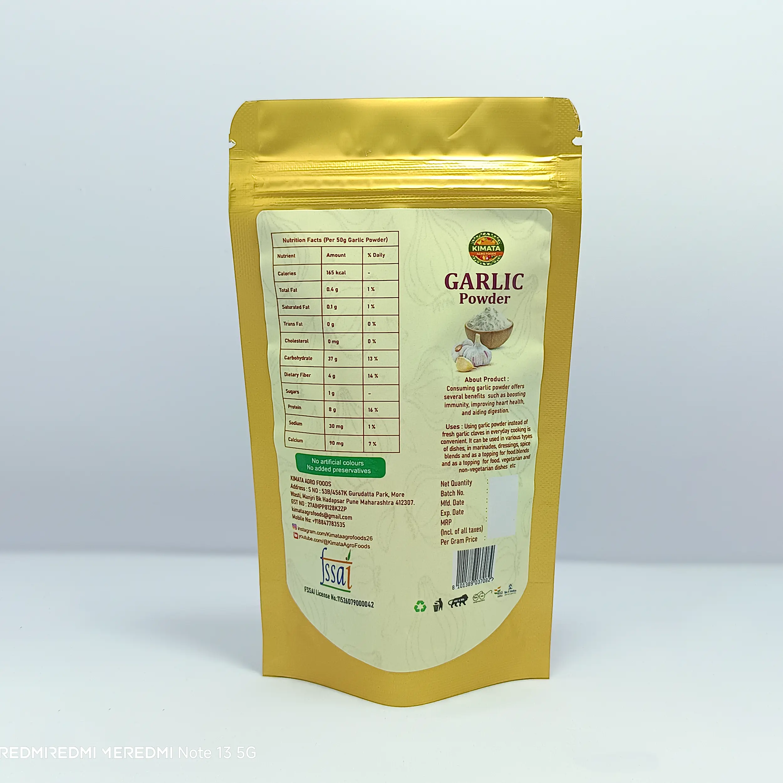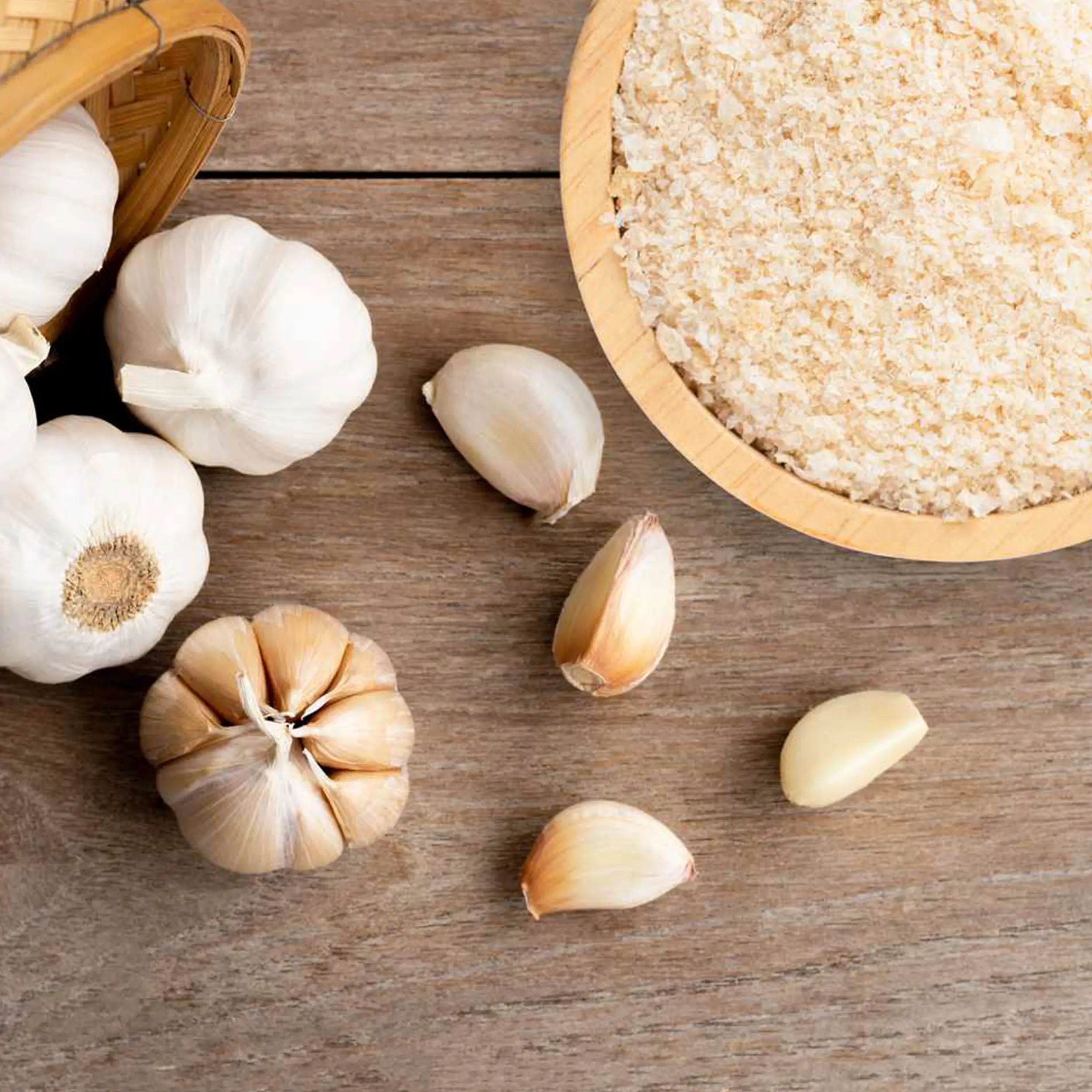 100% Dehydrated Garlic Powder with no added preservatives, artificial colors, or flavors.
